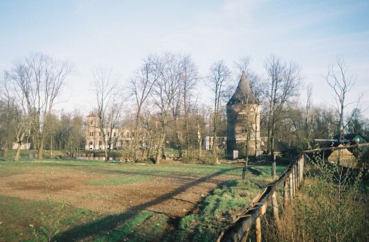 Слева вдали — усадебный дом за прудом